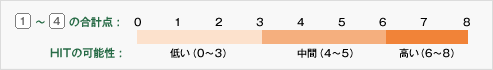 4つのカテゴリーにそれぞれ0、1、2の点数をつけて、その総和で判断(最大8点)