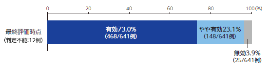 なお、全般改善度は、調査担当医師が本剤初回投与前と比較して、「有効」、「やや有効」、「無効」、「判定不能」の3段階で評価しました。